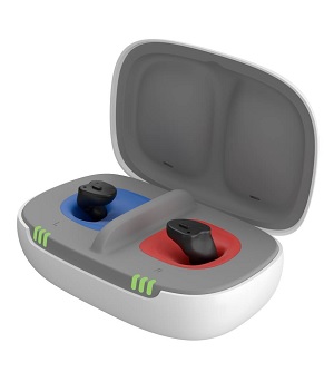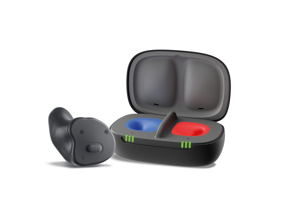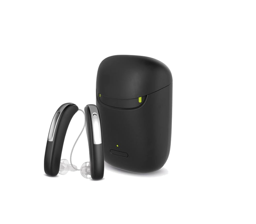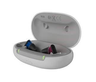 - Le chargeur nomade : offre un confort et une recharge nomade. Sa batterie permet de recharger 3 fois une paire d’appareils auditifs. Un couvercle protège les appareils auditifs et empêche la poussière de s’accumuler dans le chargeur. 2 LEDs indiquent l’état de charge (une par appareil auditif) et une pour la batterie intégrée. Compatible avec les RIC IX et AX.