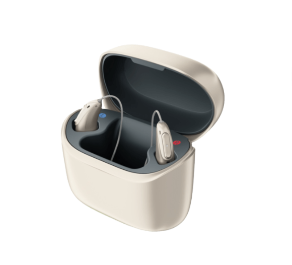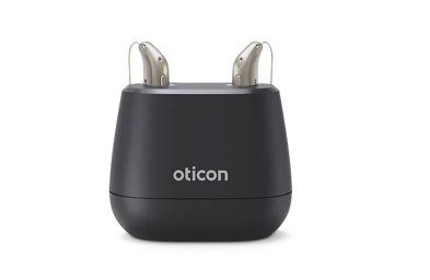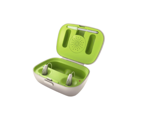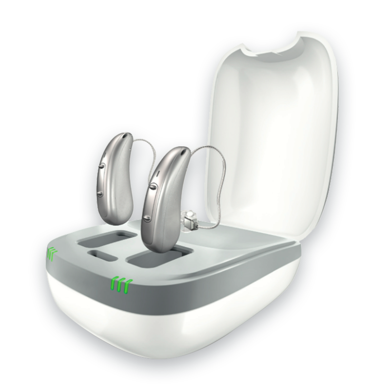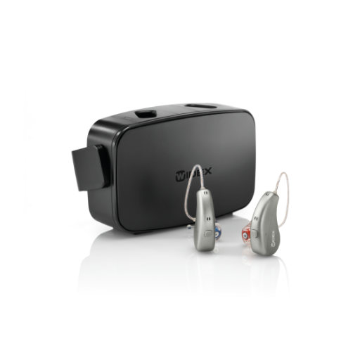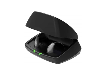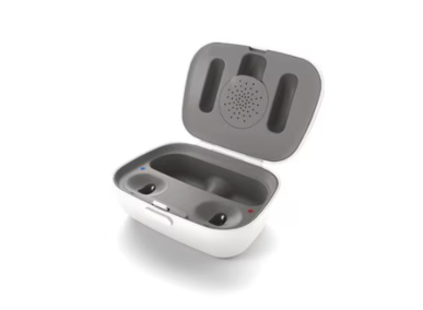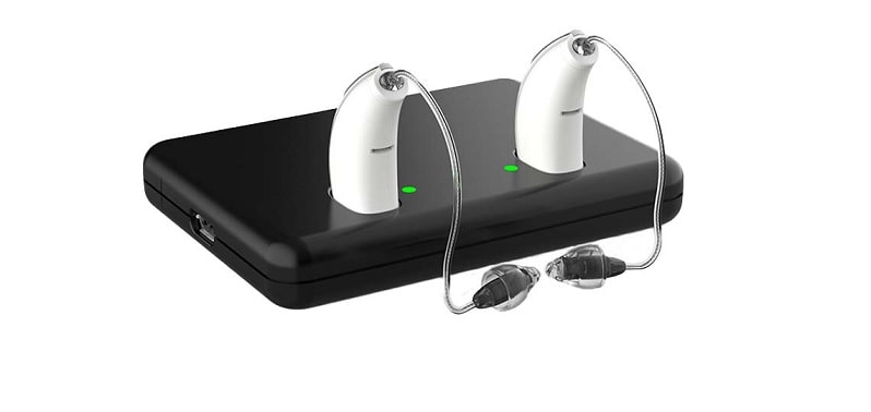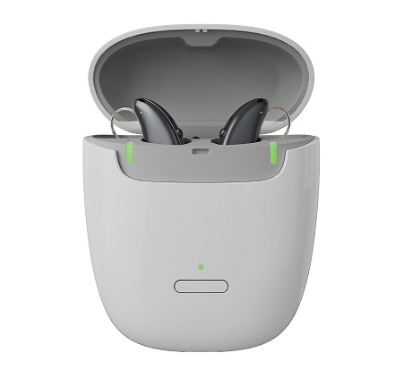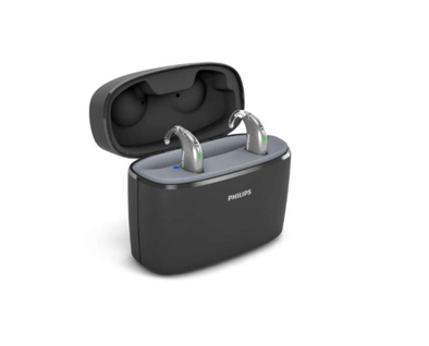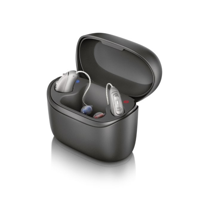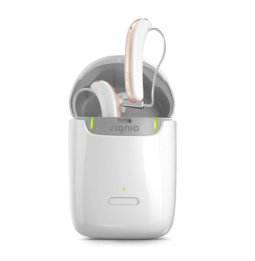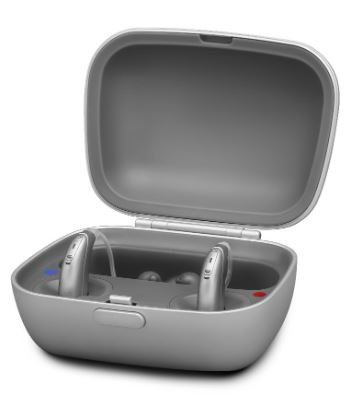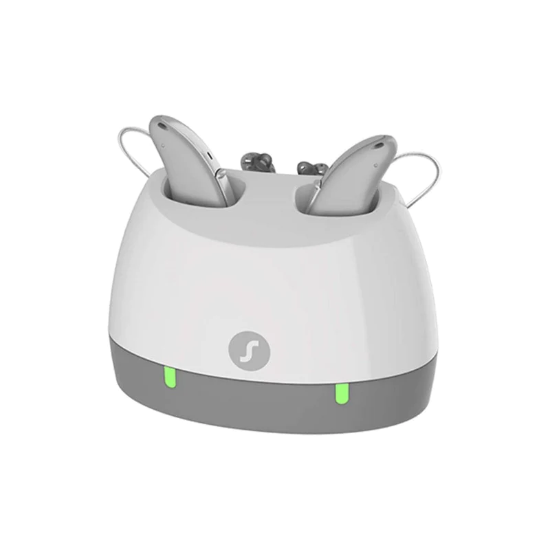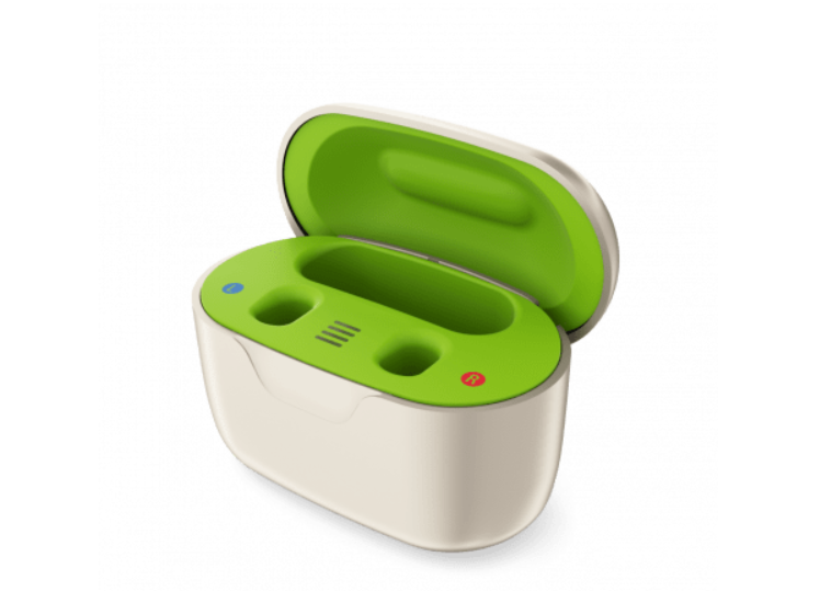 - Le Phonak Charge and Care: sèche les aides auditives grâce à un flux d’air ventilé actif et traite les aides auditives avec des rayons UV. Ce chargeur ne prend que trois heures pour recharger complètement une aide auditive épuisée. Compatible avec les RIC Paradise et Marvel.