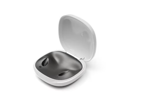 - Le chargeur intra : utilise une technologie de charge inductive par résonance magnétique pour recharger efficacement les aides auditives directement dans le conduit auditif. Il intègre un module de régulation de courant haute précision avec un capteur de température pour prévenir la surchauffe et optimiser la vitesse de charge. Ce dispositif est équipé d’un système de détection capacitive pour un alignement précis des contacts et d’une protection électronique pour assurer une recharge sécurisée, tout en offrant une interface LED pour un suivi clair de l’état de la charge. Compatible avec les ITE NEXIA et OMNIA.