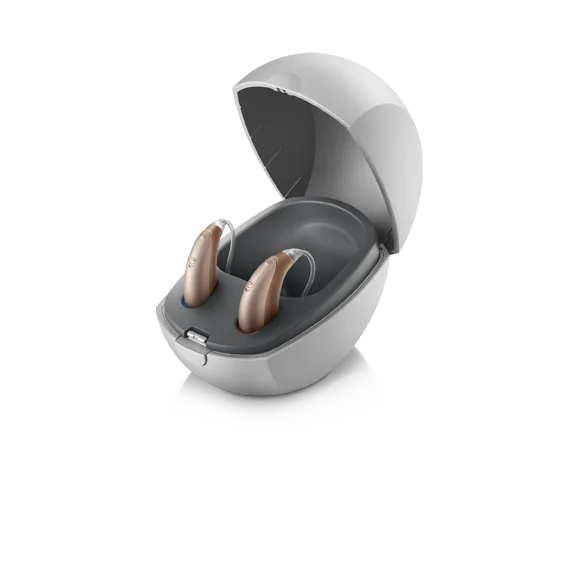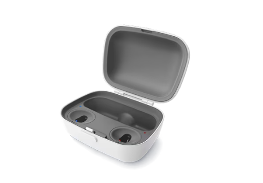 Assez petit pour être transporté où que vous alliez, et simple à utiliser pour s’intégrer parfaitement à votre quotidien. Il suffit simplement d’ouvrir le couvercle et de déposer les aides auditives dans les puits de recharge pour amorcer la recharge.