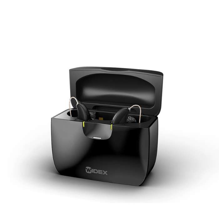 - Widex Charge N Clean : les utilisateurs peuvent maintenant prendre soin de leurs aides auditives rechargeables avec ce chargeur qui allie une fonction de désinfection et de séchage. Il offre également 4 heures de recharge pour une utilisation pendant une journée complète ainsi que 30 minutes de recharge rapide offrant 4 heures d’utilisation supplémentaire. Compatible avec les RIC et BTE de la puce MOMENT.